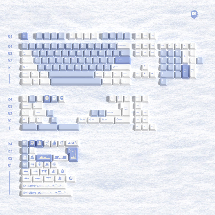 The Lumokeys "Winter" Keycaps Set features a sleek, minimalist design inspired by the serene beauty of winter. With a cool-toned palette of blue and white, these keycaps evoke the calm of a winter landscape. Made from durable high-PBT, they’re built for longevity and provide a smooth, comfortable typing experience. The legends are created using dye-sublimation to ensure they stay sharp and fade-resistant. Fully compatible with Cherry MX-style switches and similar mechanical switches, these keycaps are the perfect blend of style and durability for any keyboard enthusiast.