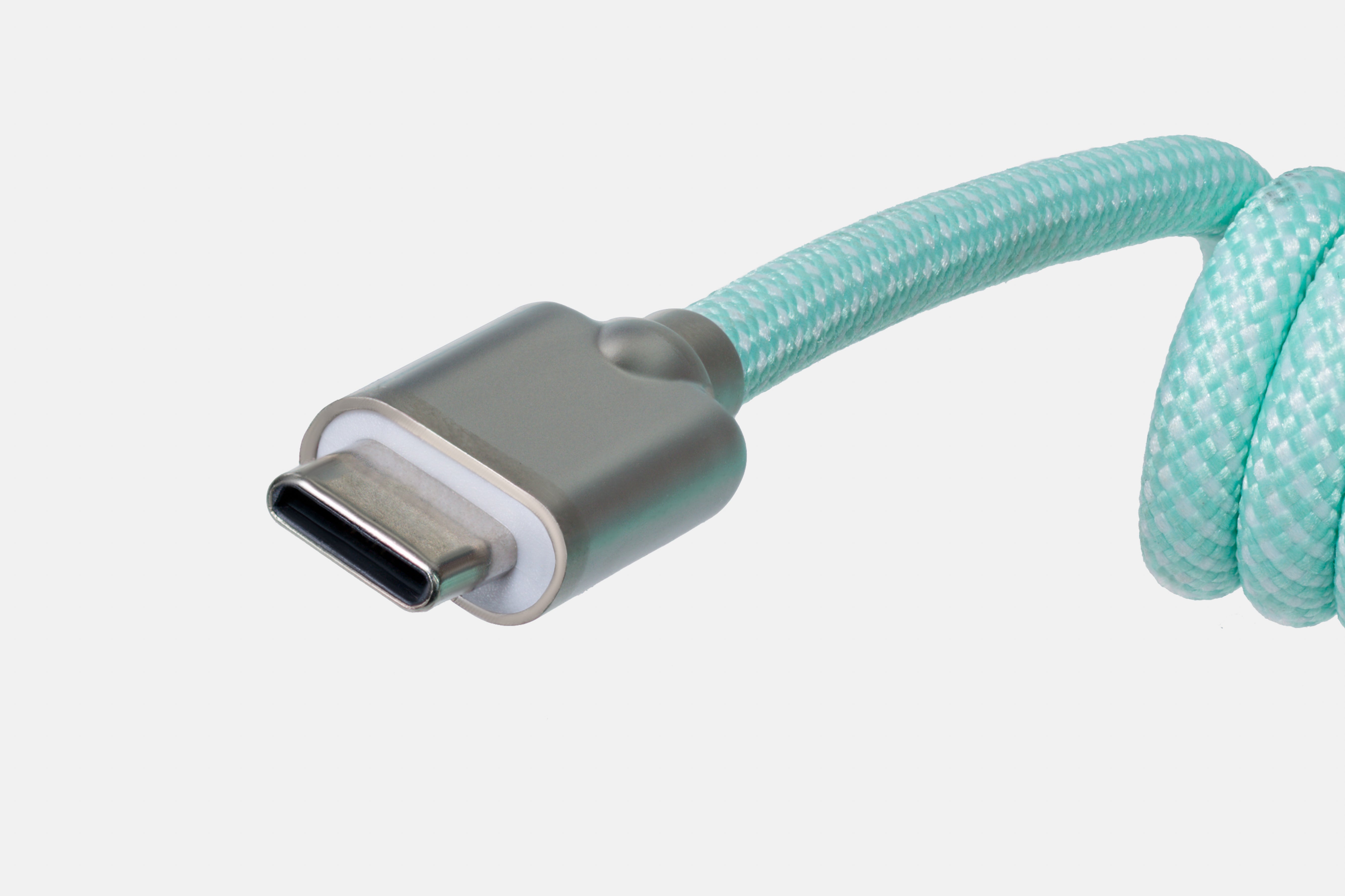 The macaron cable is sold in 4 colors, to match the colors of the macarons sold in bakeries. The coating of the cable is made of PP fiber, offering a silky feeling when you touch the cable, while it protects the cable from being damaged. Cables are soldered with colored aviation connectors painted with high-quality paint. The connectors on both the USB A side and the USB C side are metal connectors made of Zinc Alloy, providing a smooth finish and a decent look. Inside the connectors, we used the injection molding process to protect the connectors from being damaged.
