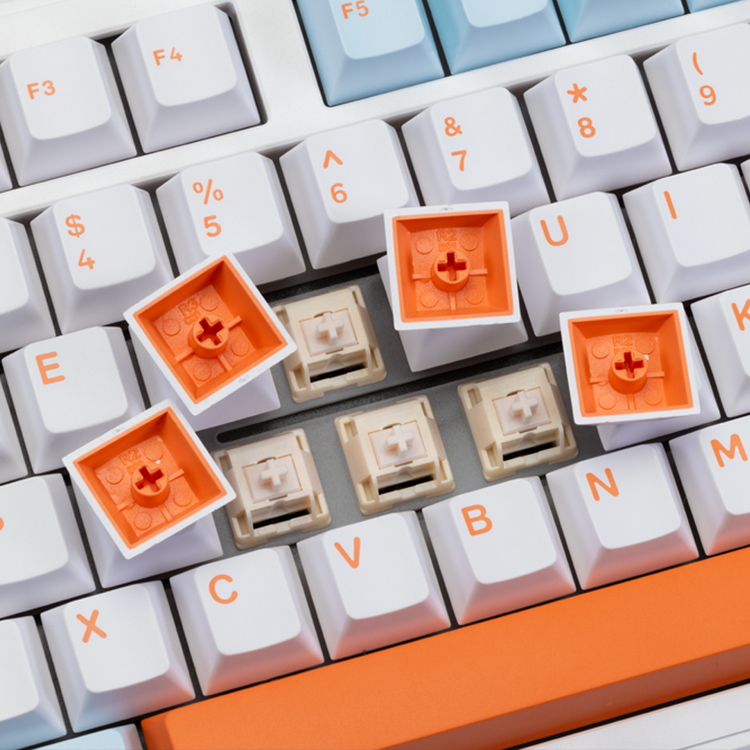 Different versions of the keyboard come with various switch options, including polar, cheese and frost Blue switch, and feature either FR4 or PC positioning plates. Essential accessories like a keycap puller and extra switches are included for added convenience.
